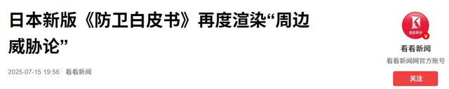 近日,日本内阁会议通过了2025年新版《防卫白皮书》,再次渲染所谓的“周边威胁论”,目的就是为了增加防卫预算找借口。